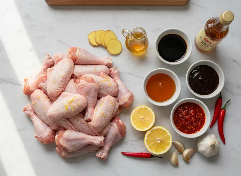 - Mix the Marinade: In a separate medium bowl, whisk together all the marinade ingredients: soy sauce, honey or brown sugar, lemon juice or rice vinegar, chili garlic sauce (or your preferred spicy alternative), minced garlic, grated ginger, toasted sesame oil, Chinese cooking wine (or substitute), hoisin sauce, and oyster sauce. Mix until everything is well combined and the sugar has dissolved.