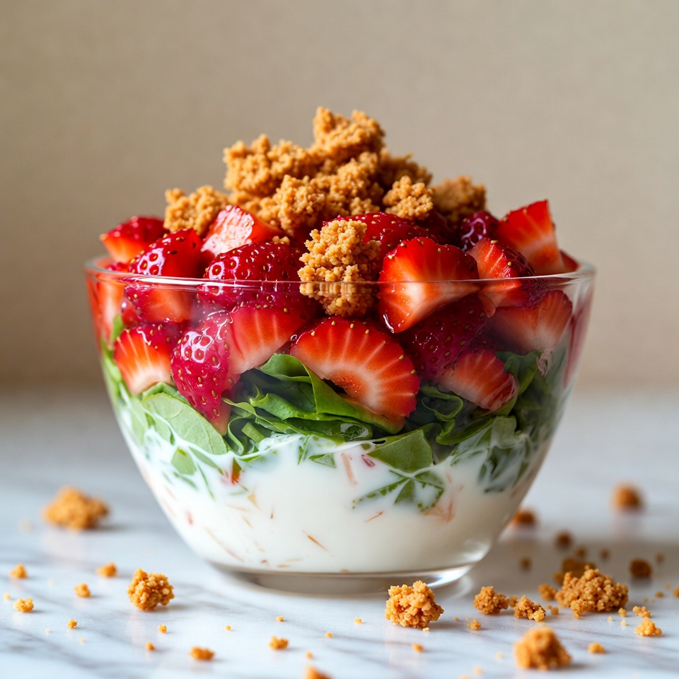 Historically, fruit-based salads have been a staple of American picnic culture, evolving from the heavy, gelatin-based “salads” of the mid-20th century into the sophisticated, nutrient-dense bowls we celebrate today. This recipe draws inspiration from the classic Southern “Strawberry Pretzel Salad,” but reimagines it as a fresh, elegant garden salad.