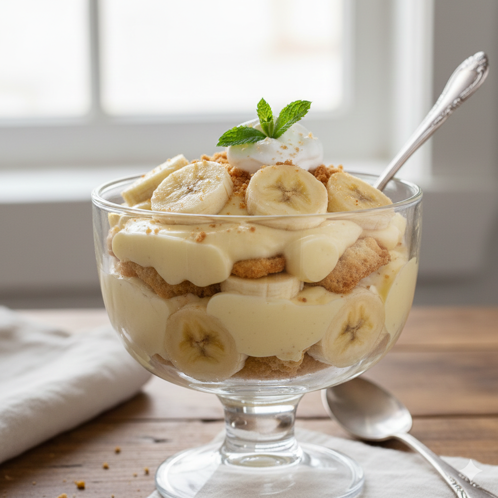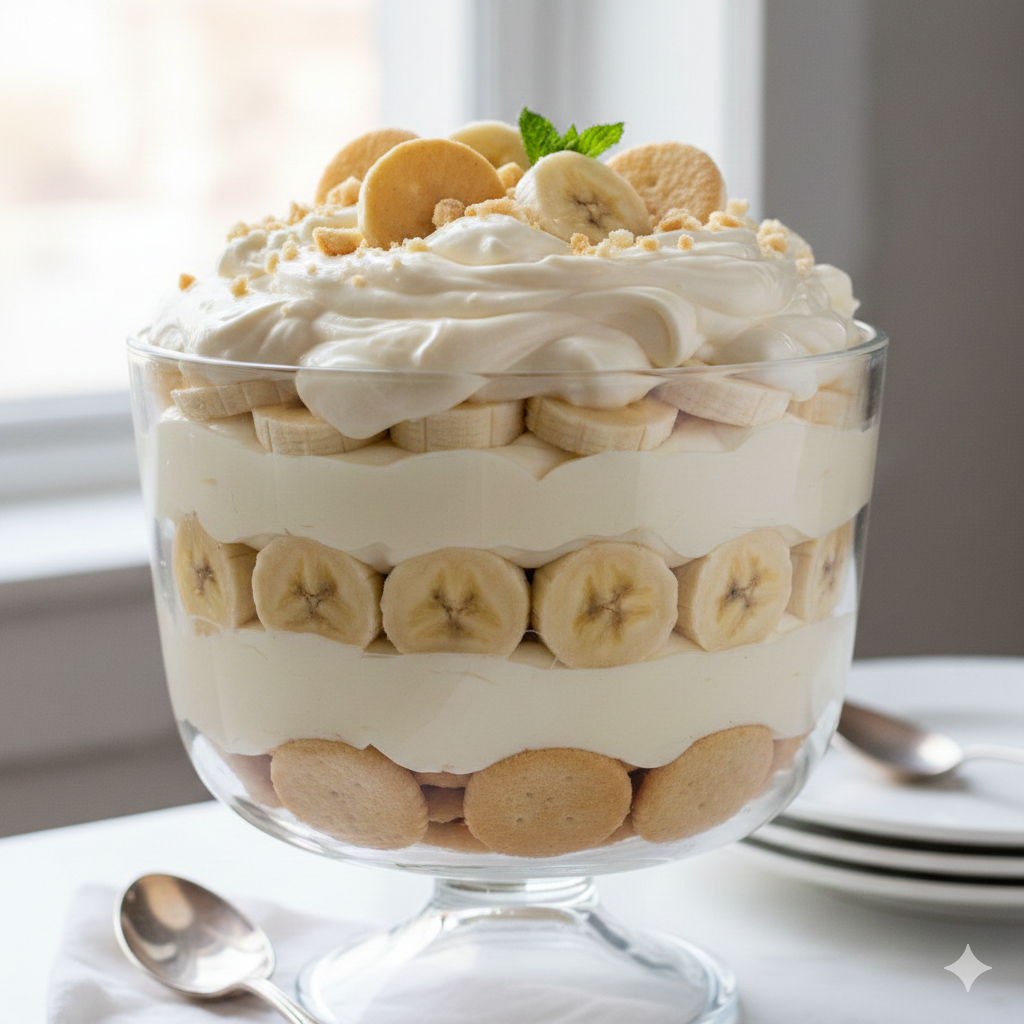 - Trifle Bowl or Large Glass Bowl: 3–4 quart capacity. The clear glass allows the beautiful layers of wafers and bananas to show.