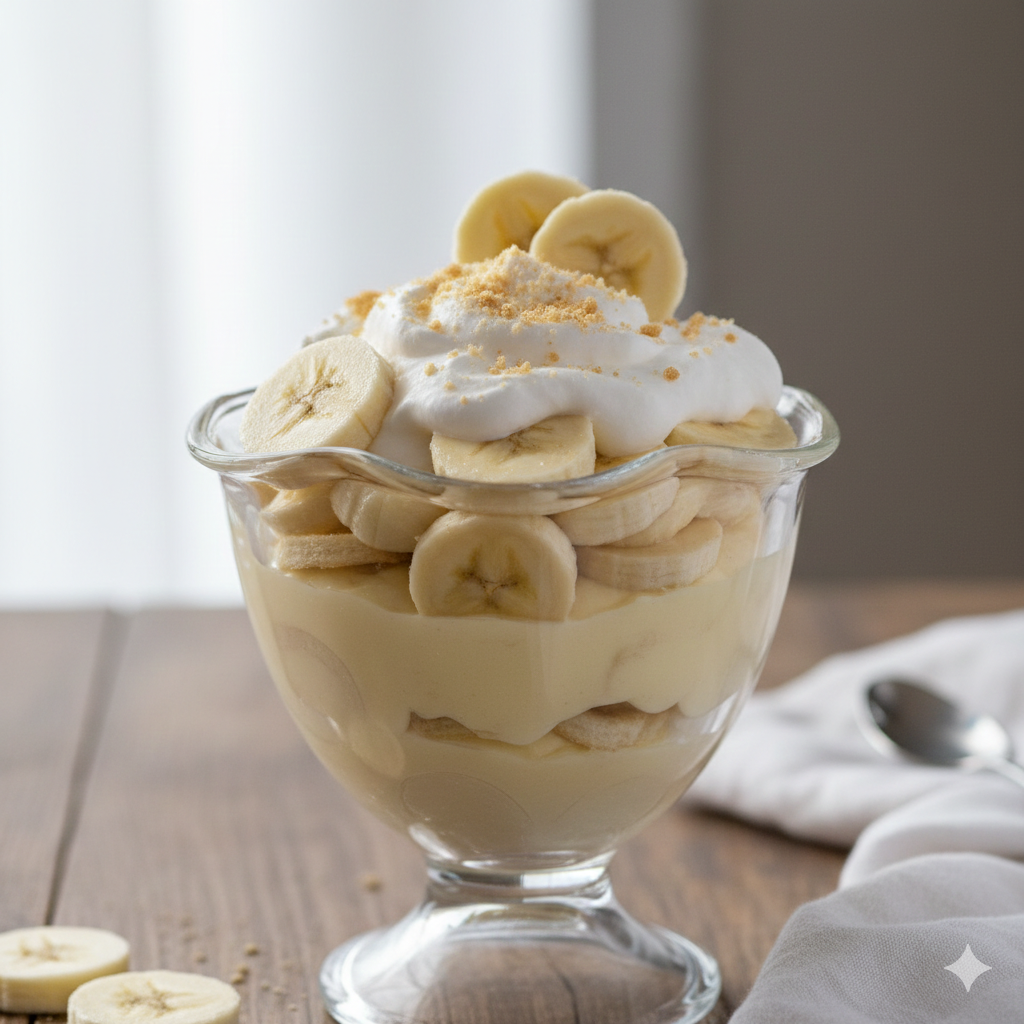 The presentation of Banana Pudding can range from rustic family-style to elegant individual portions.