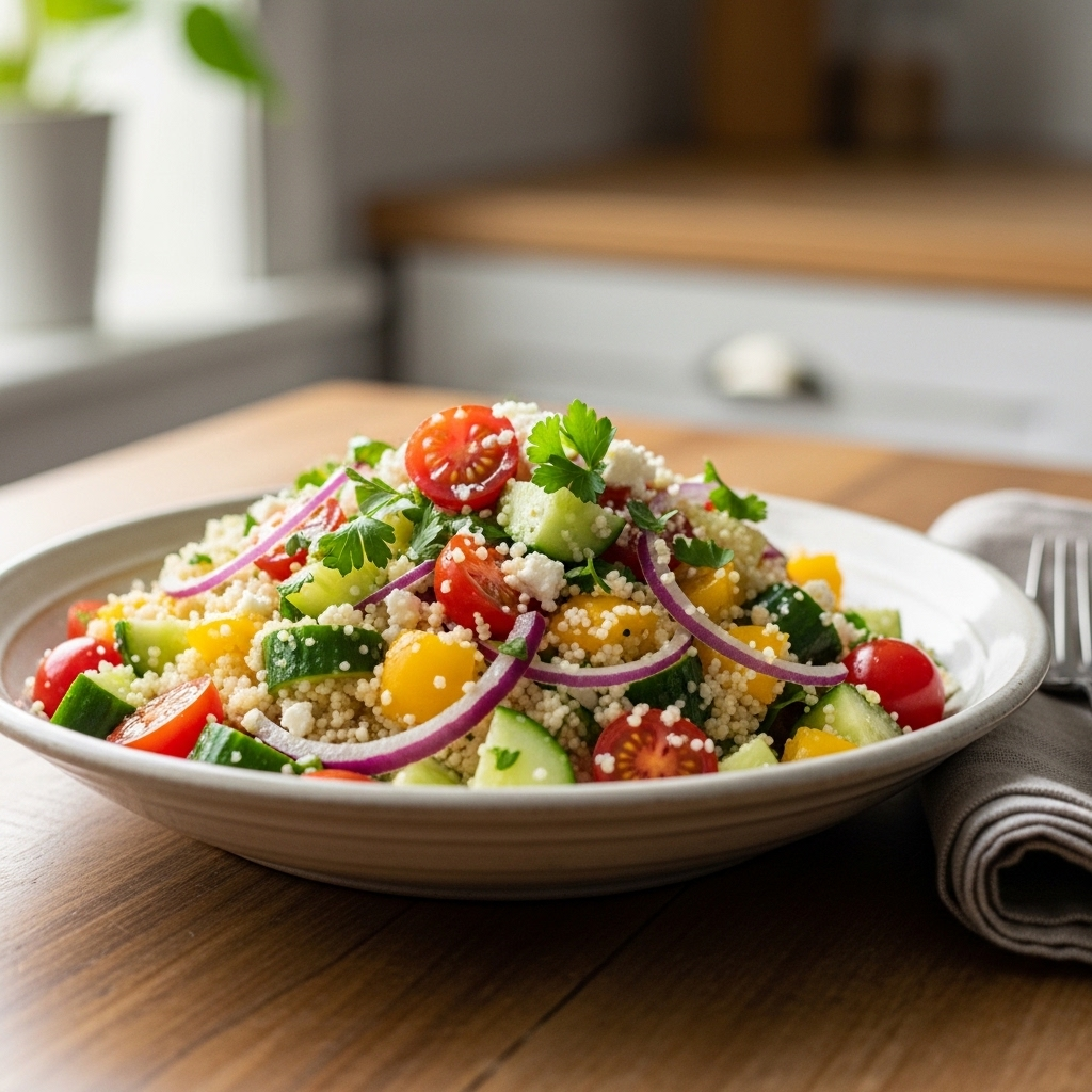 • Toast the Grains: Before adding water, sauté the dry couscous in a teaspoon of olive oil for 2 minutes until it smells nutty.