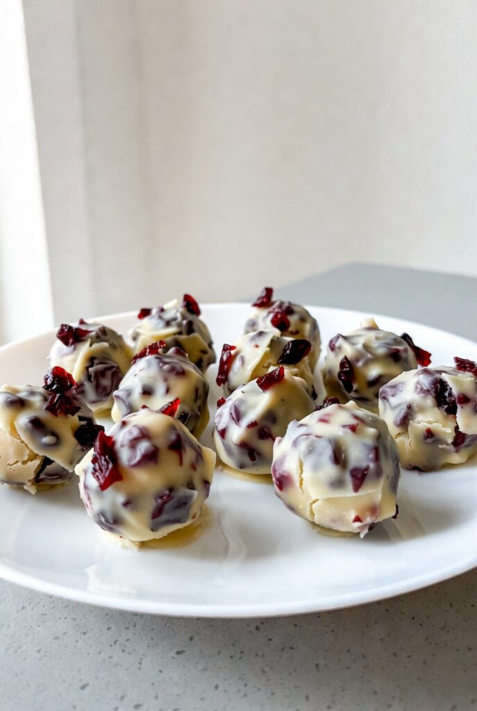 • The “Boozy” Truffle: Soak the cranberries in 1 tablespoon of Grand Marnier or orange liqueur for 30 minutes before mixing.