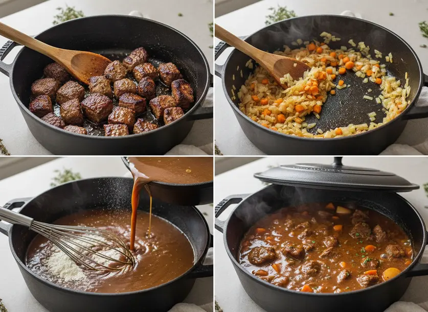 1. Pat the cubed beef thoroughly dry with paper towels. This helps achieve a beautiful sear. Season the beef generously with salt and freshly ground pepper.