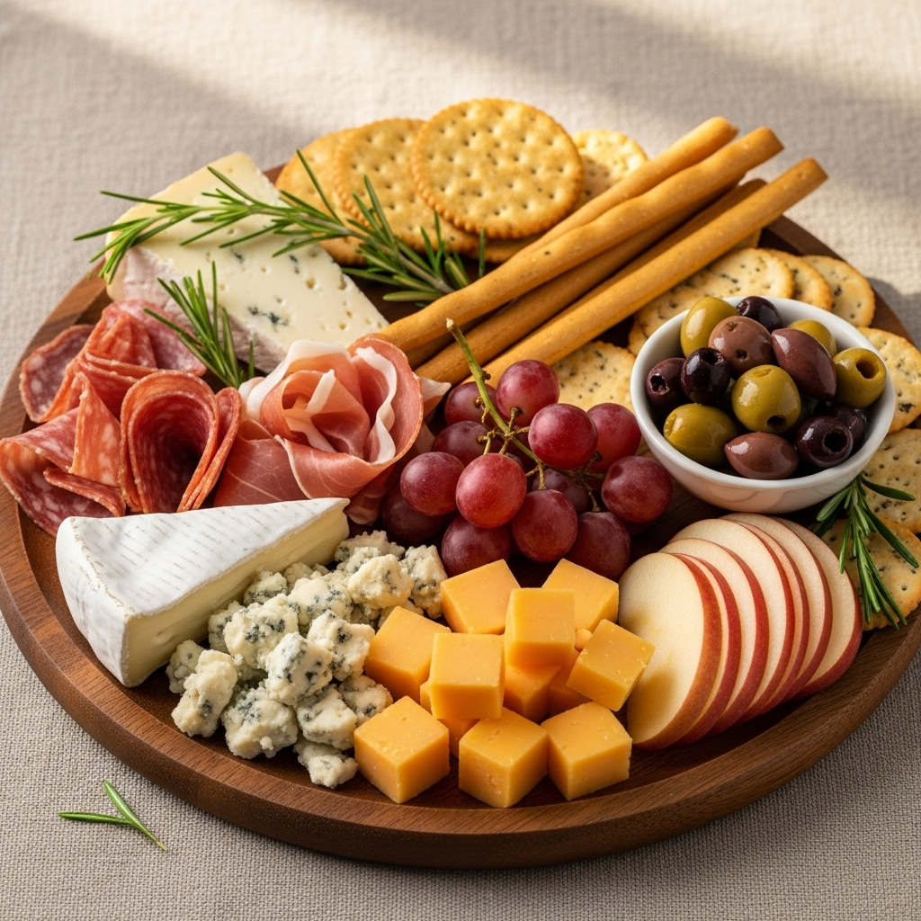 - The Rule of Three: Aim for three types of cheese (Hard, Soft, Blue) and three types of crunch (Cracker, Nut, Fresh Veggie).